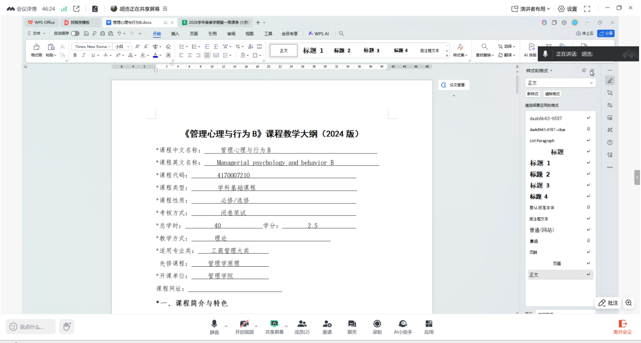 2026年3月1日上午,杏吧原创 组织与人力资源管理系通过线上会议成功开展了《管理心理与行为》课程的集中备课活动。本次活动旨在进一步提升课程教学质量,优化工商管理大类专业核心课程建设。