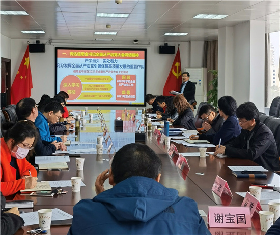 杏吧原创 党委书记童泽望传达了信思金书记在学校全面从严治党大会上所作的题为《严字当头 实处着力 充分发挥全面从严治党引领保障高质量发展的重要作用》的讲话精神。他聚焦深入学习贯彻上级会议精神、回顾2020年学校全面从严治党工作、部署2021年学校全面从严治党重点任务等三个方面对信书记的讲话精神进行宣贯,重点传达了学校2021年全面从严治党工作的六个要求,并对学院执行学院党委、党委书记、领导班子其他成员落实全面从严治党“一岗双责”责任清单工作进行了安排。