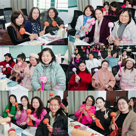 在专业老师示范下,女教师们通过缝制填充、收口装饰等工序,制作出造型精美的非遗香囊和艾草养生锤,活动室内清香萦绕,笑语不断,女教师们手捧着自己的作品,脸上洋溢着幸福和满足的笑容,纷纷拍照留念,记录下这美好的时刻。