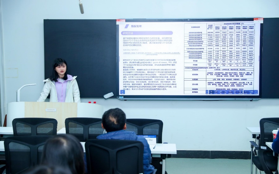 分论坛六由吴强教授与杜东雷教授主持,黄菡、巢雪薇等青年学者代表参与宣讲。会议内容涵盖了技术预测、非物质文化遗产的象征性价值及社会信用环境对外资引进的影响等问题。